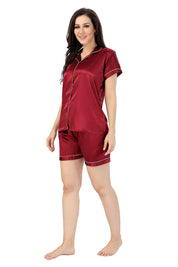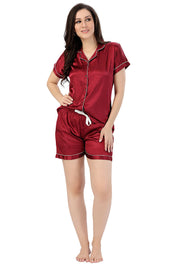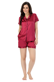 Cerise ANGELS Women's Satin Shorts Nightwear Set AZPLAIN