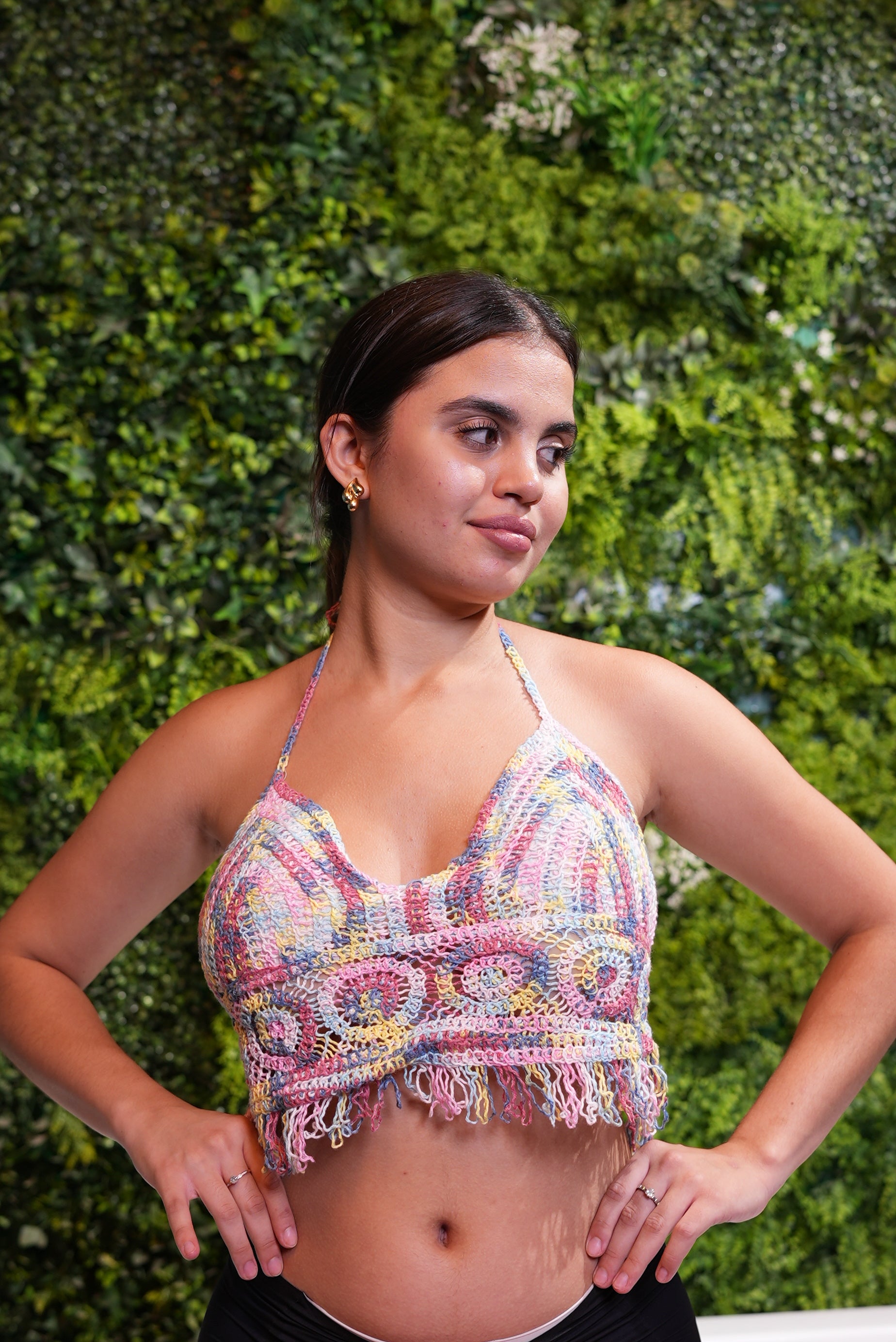 The halter neckline ensures a flattering fit, while the lightweight texture makes it perfect for warm beach days and relaxed vacations. Delicate fringe accents along the hem add movement and a fun twist, making this piece stand out. Designed to be versatile, it pairs beautifully with shorts, skirts, or swimwear bottoms, giving you a fresh and fashionable look.