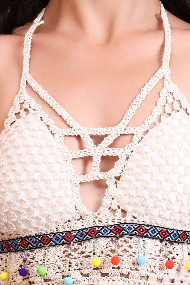 AXTZH Crochet Halter Beachwear Bra Top with Handcrafted Detailing and Playfu-X0169-BEIGE4-BW1PBL