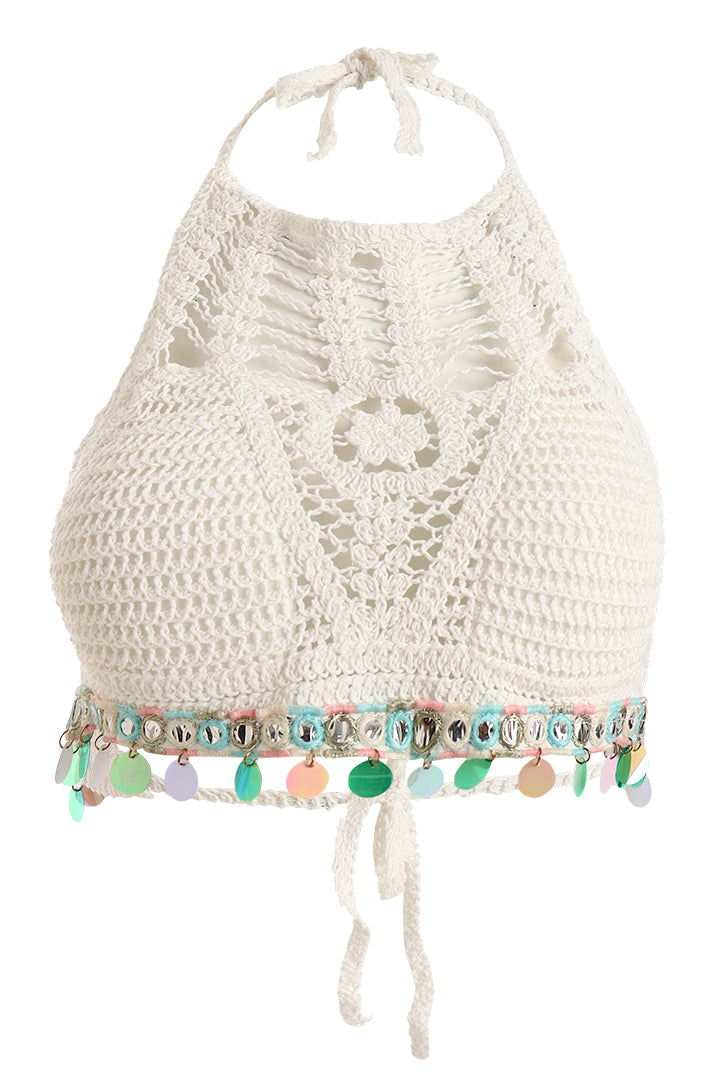 AXTZH Crochet Halter Beachwear Bra Top with Handcrafted Detailing and Playful Design-X0169-WHITE8-BW1PBL