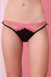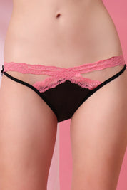 That gorgeous crisscross lace detail on the sides. It’s soft, stretchy, and sits just right on your hips — not too tight, not too loose. It hugs you in all the right places and shows off a little skin in the most effortlessly sexy way. The black lace against the soft blush pink -- Obsessed. It’s romantic but still has a bit of attitude.