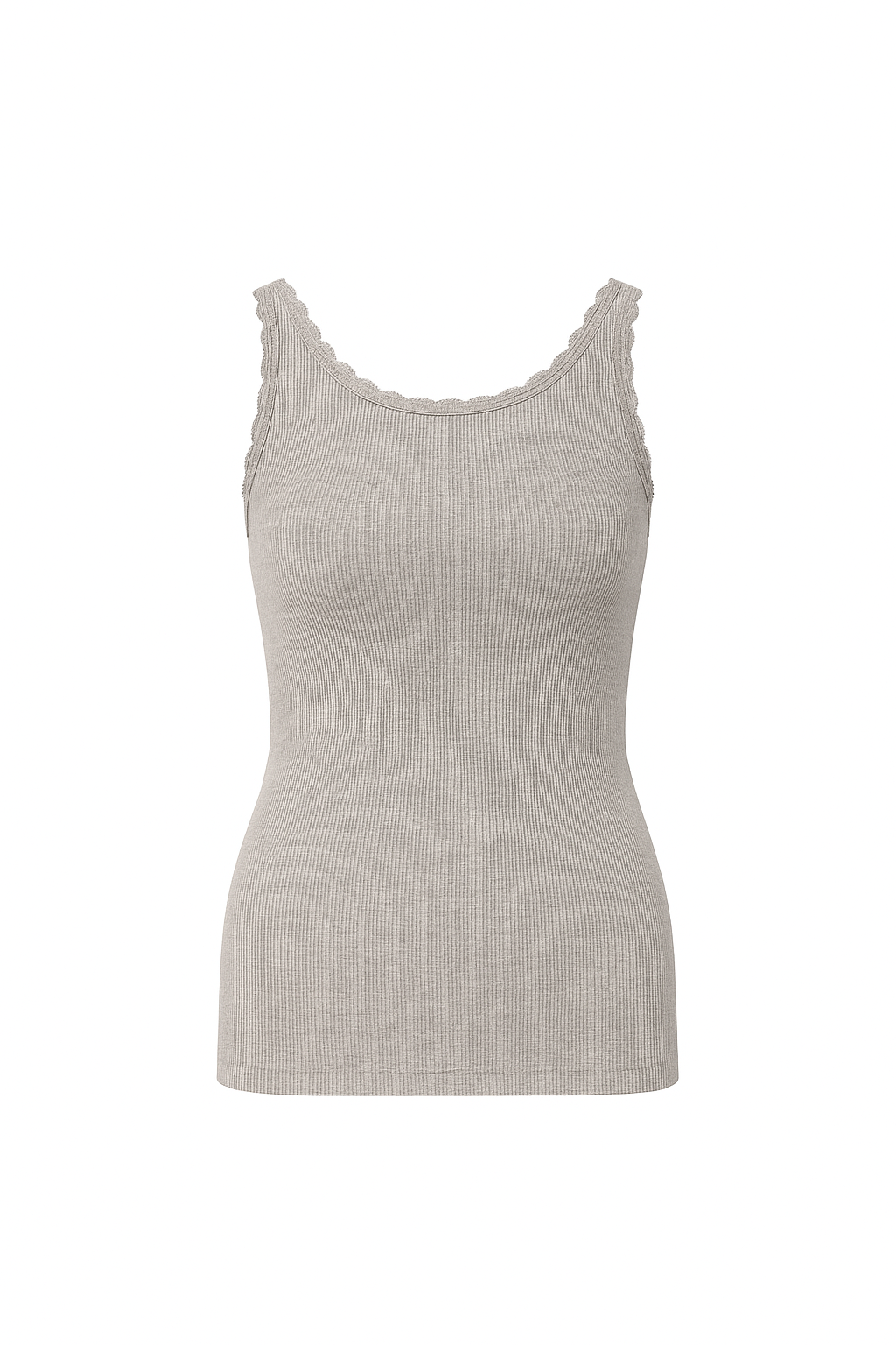This ribbed camisole is your ride-or-die layer — soft, stretchy, and made to move with you. The wide neckline gives just enough shape without digging in, and the subtle lace trim adds a low-key feminine vibe without trying too hard.