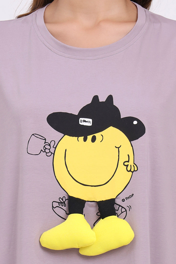 A relaxed-fit nightdress designed for ultimate comfort and a playful vibe. Crafted from soft, breathable fabric, it features a fun graphic print on the front and an easy slip-on style. The loose silhouette and mid-length sleeves make it perfect for lounging or a restful night’s sleep.