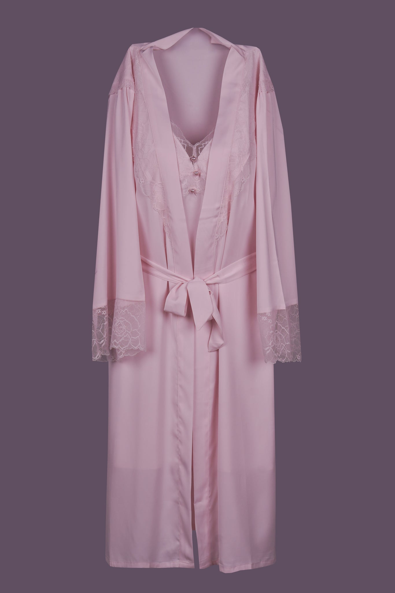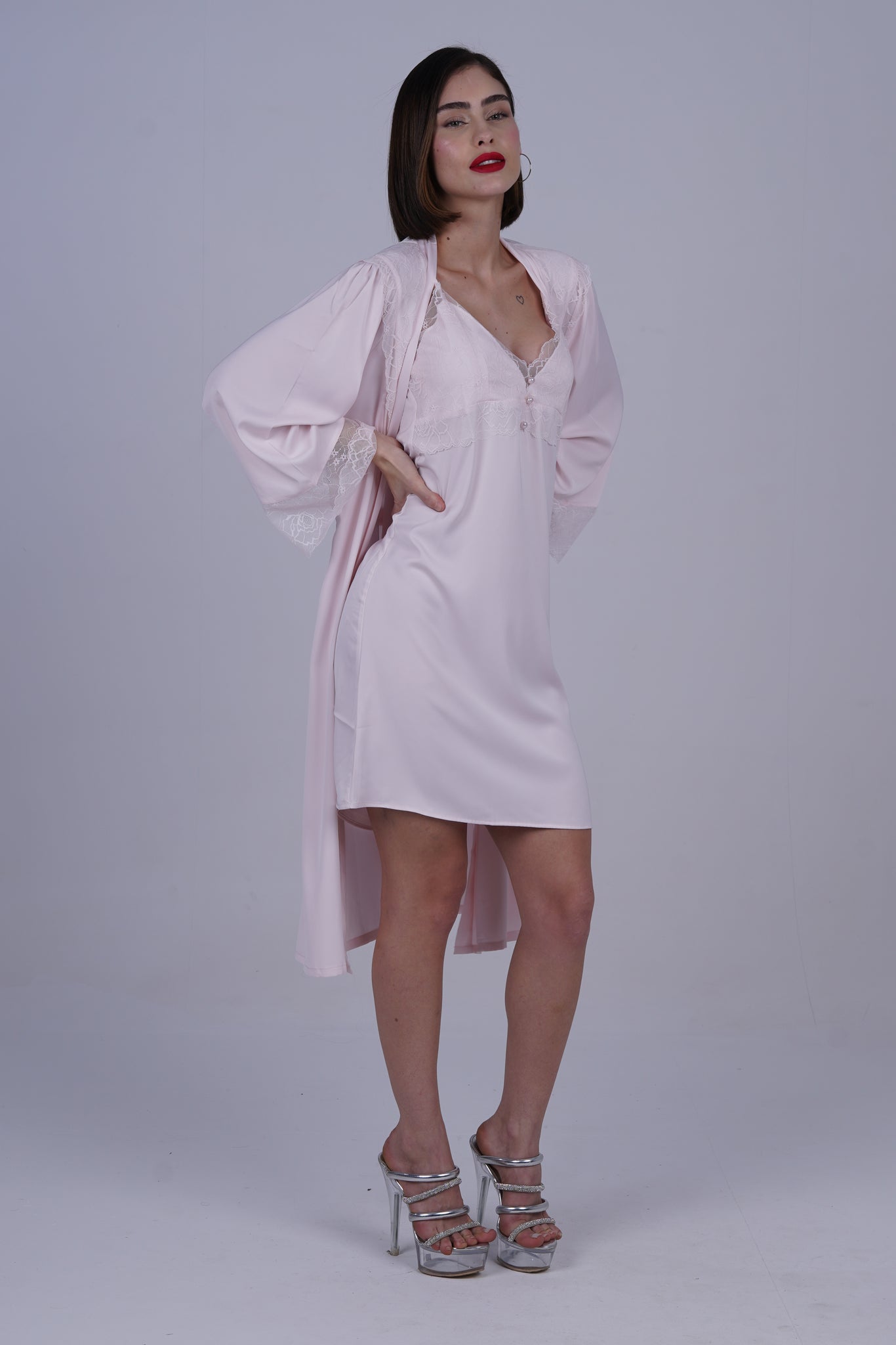 AXTZH 2-Piece Satin Nightwear Set with Lace Detail and Matching Robe for Women X2503-BLUSH-F12S