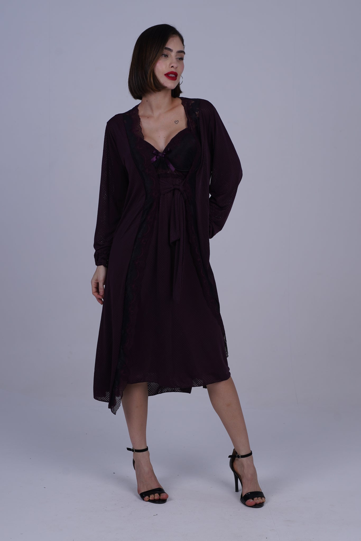 Experience elegance and comfort with this two-piece nightwear set designed to make your evenings effortlessly graceful. The set includes a long nightdress paired with a coordinating robe, crafted to enhance your natural charm while keeping you relaxed and at ease.