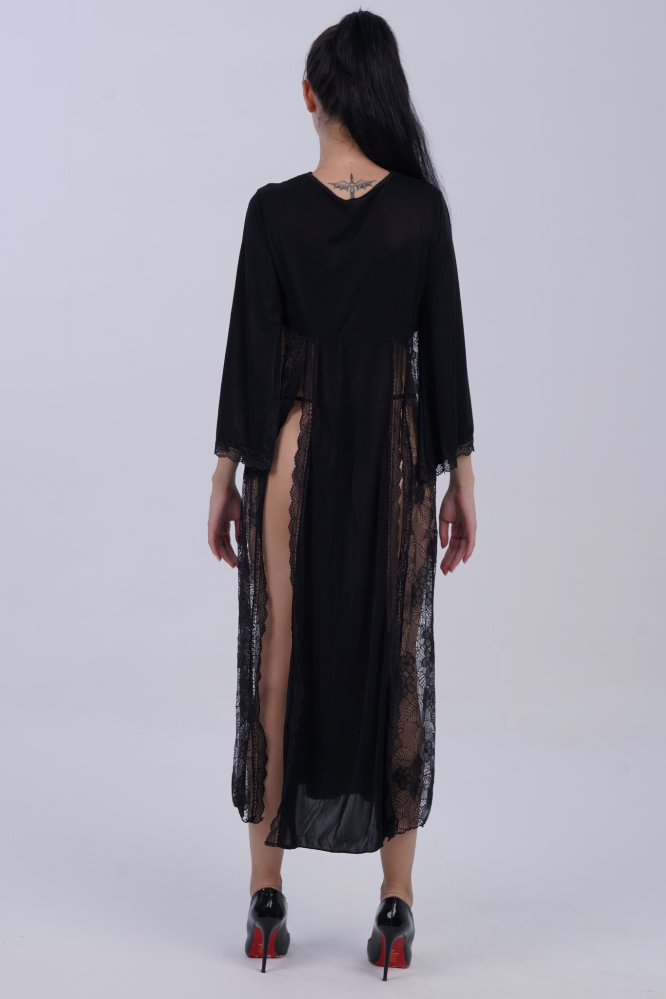 AXTZH Romantic Nightwear Set for Women with Sheer Longline Robe and Lace Accents X3493-BLACK-F2M