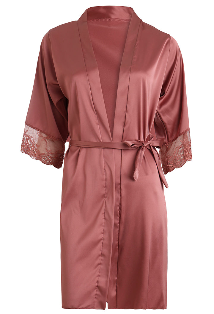 Step into timeless elegance with this 3-piece nightwear set designed for both comfort and allure. The set includes a soft satin robe, a delicate lace-trimmed slip, and a matching inner bralette that together create a graceful and flattering silhouette. The robe drapes effortlessly over the body, secured with a tie belt that cinches at the waist for a feminine finish. Sheer lace accents at the neckline and sleeves add a touch of sophistication, making it as stylish as it is comfortable.