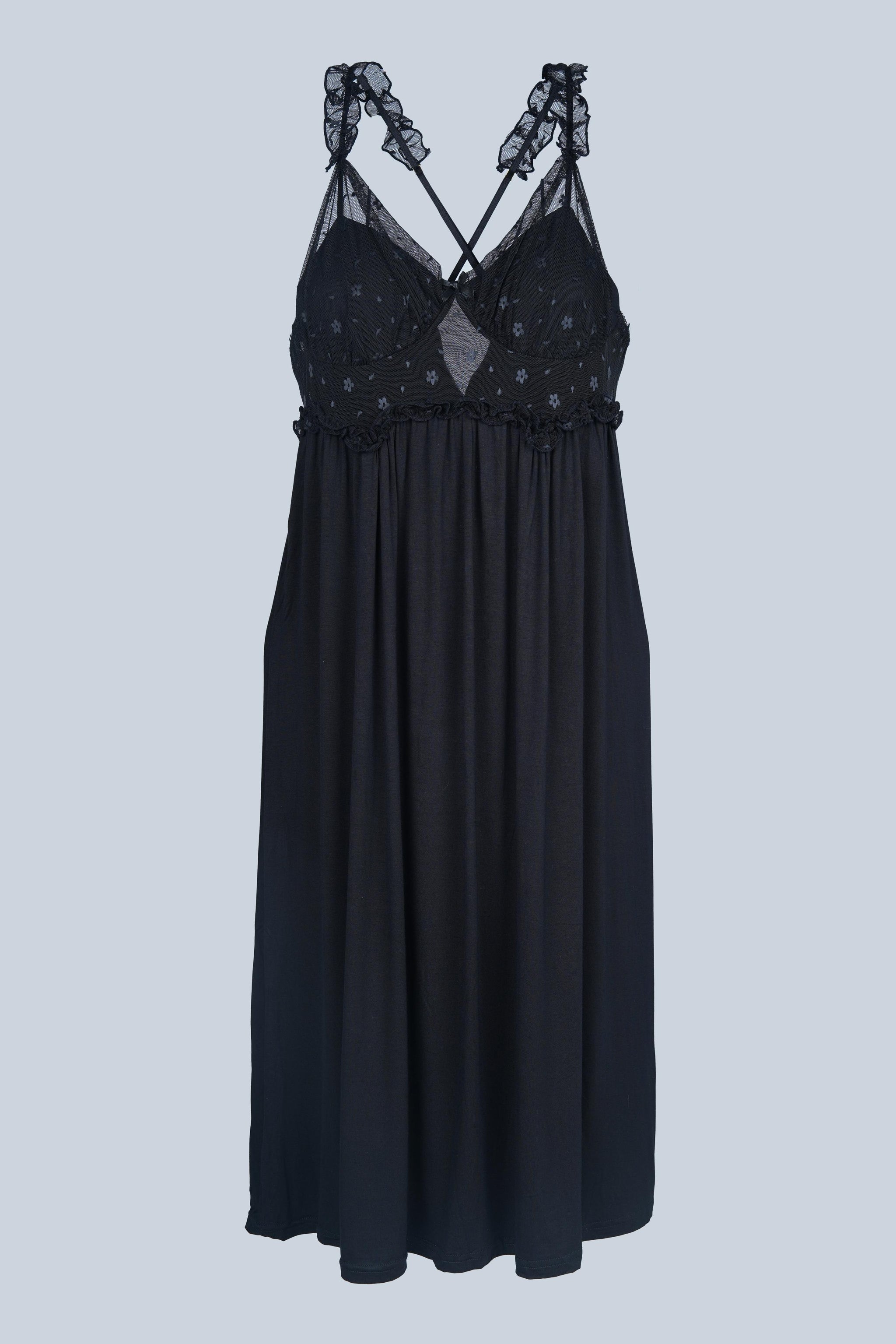This 2-piece nightwear set is the perfect blend of elegance and allure, designed to make evenings more special. The set includes a delicate slip dress that drapes softly against the body, paired with a long sheer robe that adds a romantic layer of sophistication. The robe is detailed with flowing hemlines and intricate lace touches, creating an effortlessly graceful look.