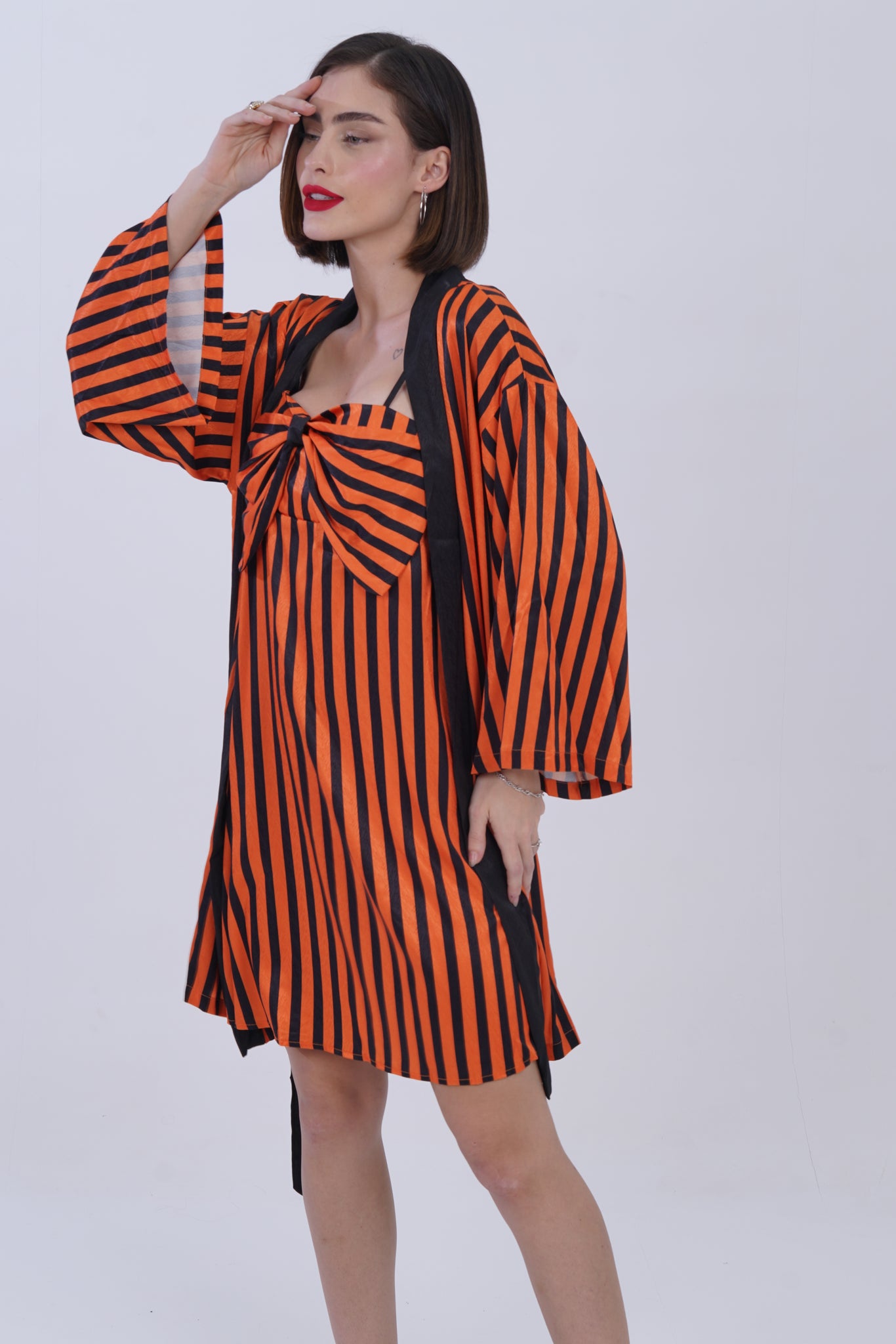 Savvyy introduces a sophisticated 2-piece nightwear set designed to blend comfort with effortless style. This set features a sleek strapless inner dress paired with a relaxed, open-front robe that ties gracefully at the waist. Together, they create a polished yet sensual look, perfect for unwinding in style or adding a touch of elegance to your evening routine.