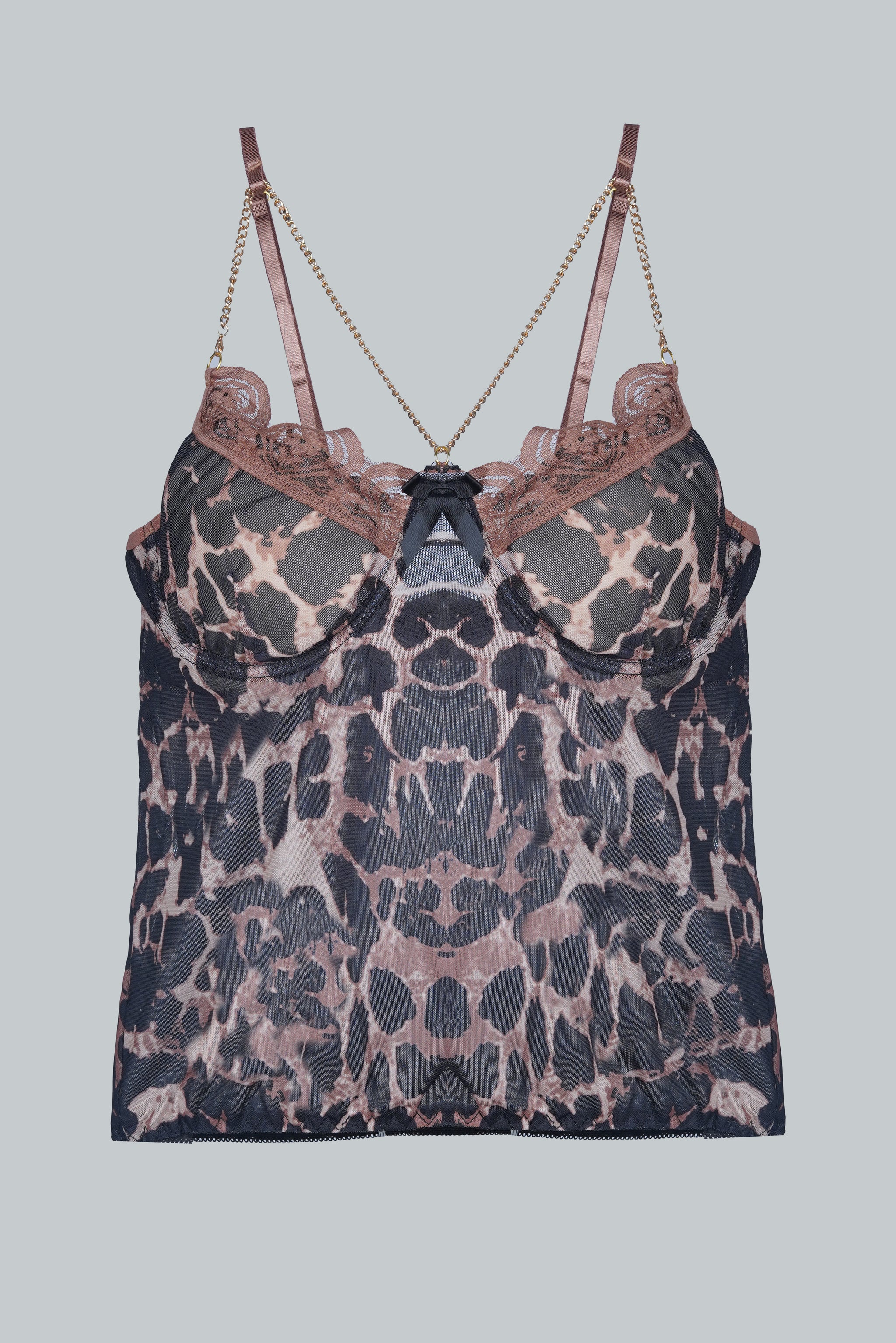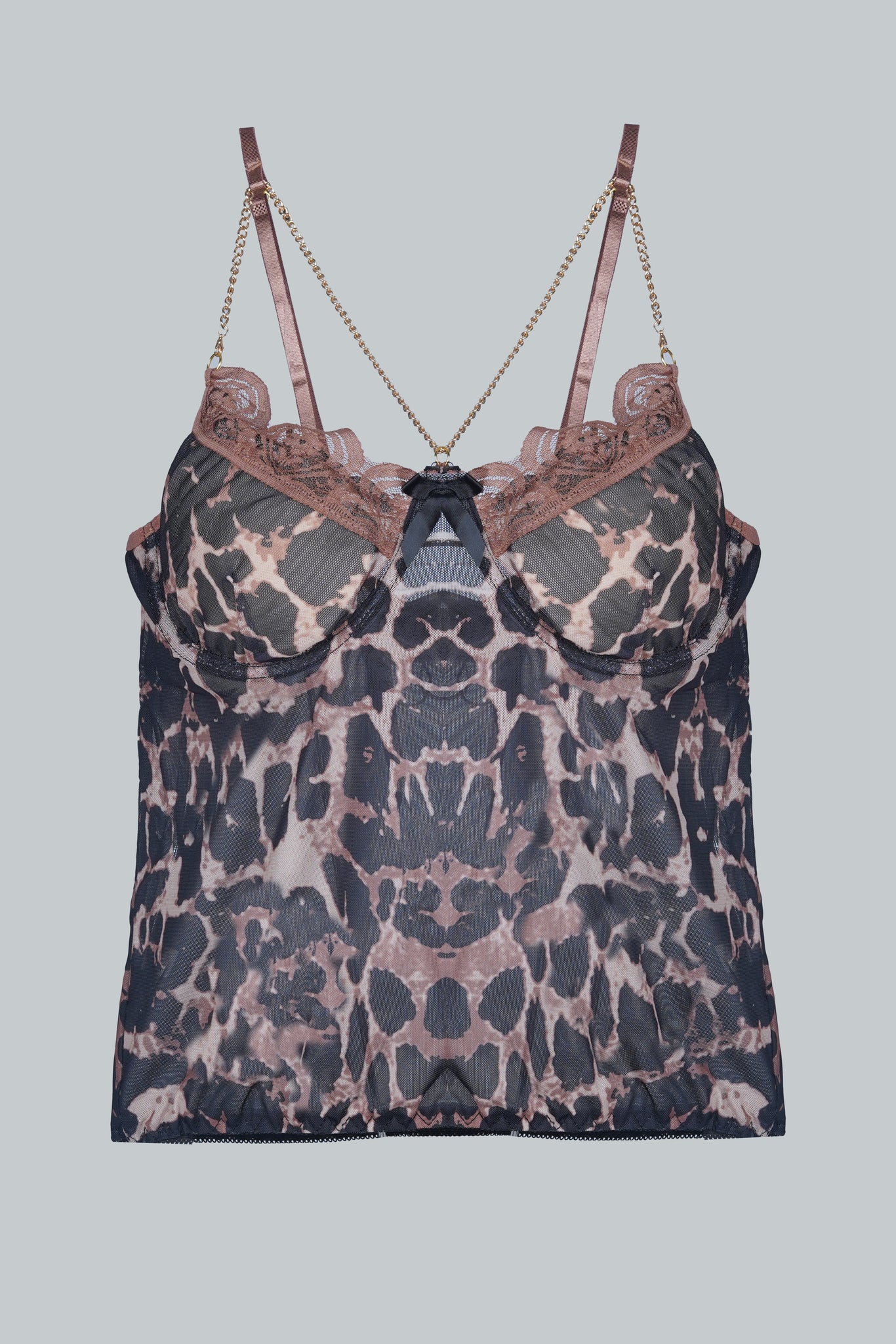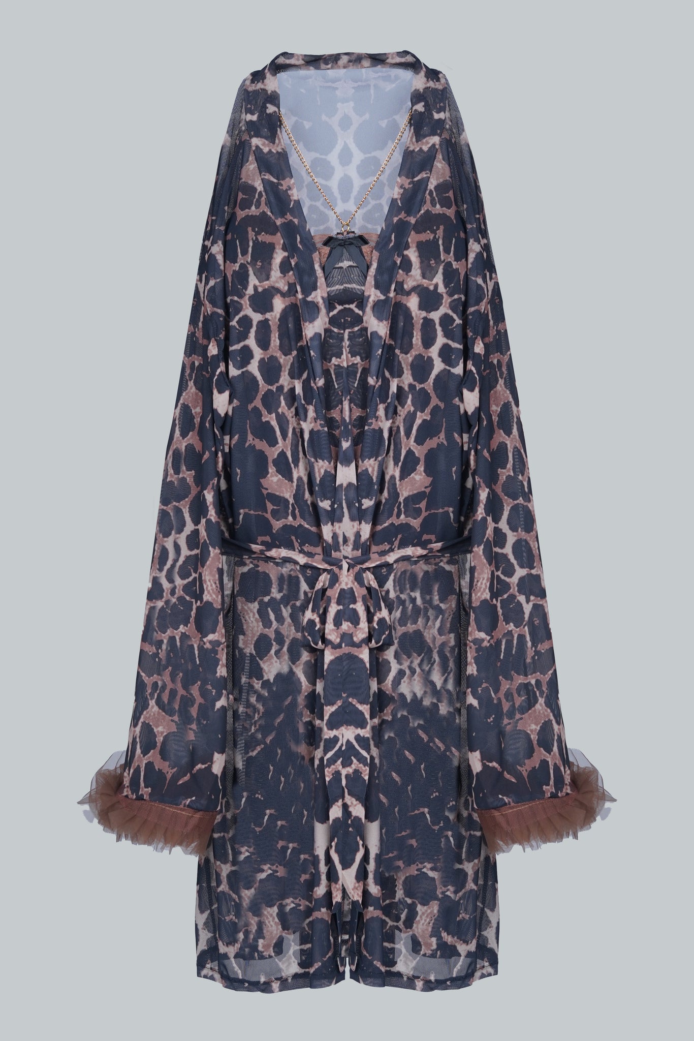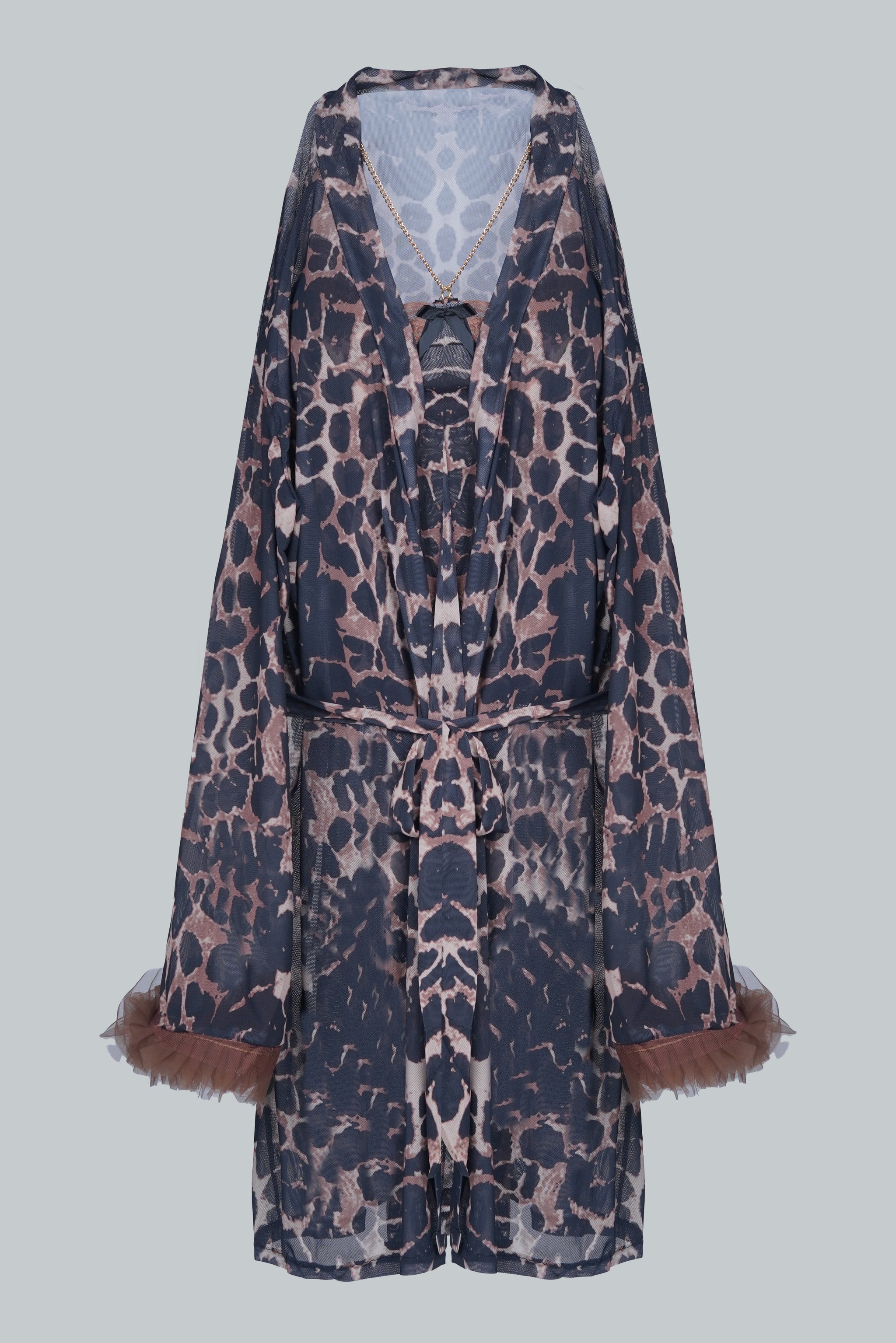 AXTZH Luxurious Three-Piece Winter Nightwear Set for Women with Sheer Robe, Delicate Innerwear, and Chic Details X2334-LEOPR-NSS3PN