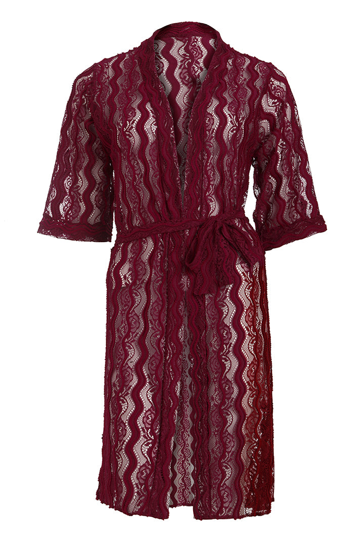 AXTZH Lace Nightwear Set with Robe & Thong NW X5527-SCARLET-F11N