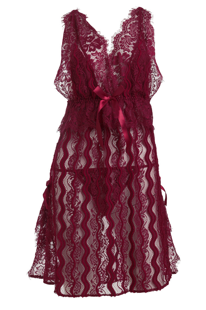 Includes: 1 Lace Nightdress, 1 Thong & 1 Lace Robe
