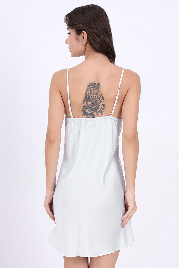 The silky satin fabric feels smooth against the skin, while the matching robe offers an added layer of sophistication. Featuring delicate lace accents on the nightdress and a tie-up belt for the robe, this set is perfect for both lounging and sleeping in style.