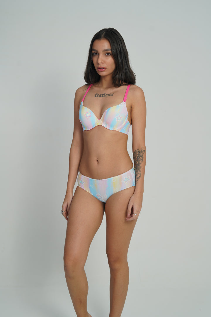 Designed to match seamlessly with its coordinating bra, this Savvyy panty is all about comfort with a playful edge. The mid-rise cut offers flattering coverage while keeping the fit light and easy to wear. Crafted from smooth stretch fabric, it moves with your body and feels soft against the skin, making it a natural choice for everyday wear.