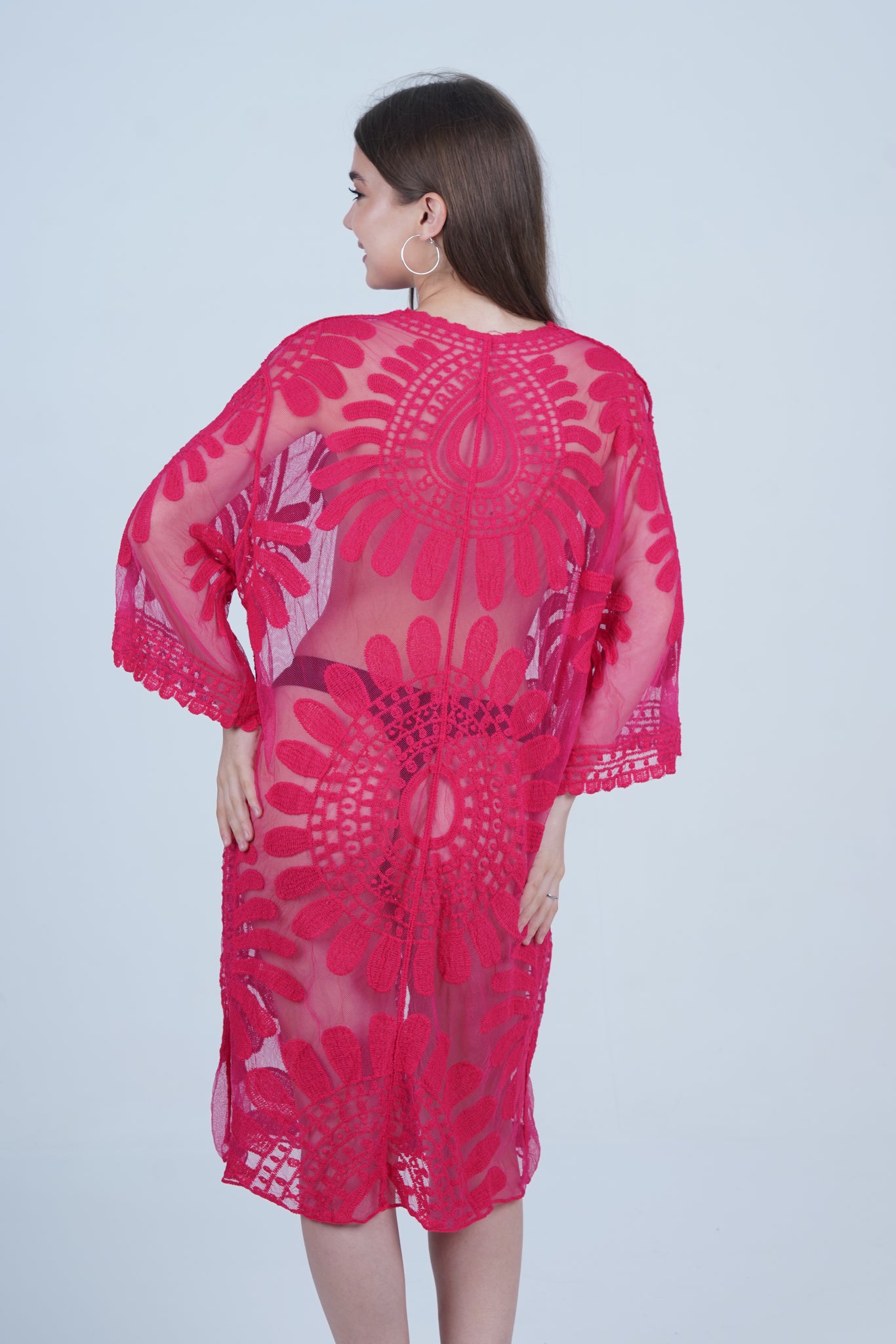 AXTZH Elegant Beachwear Cover-Up Featuring Intricate Patterns and Lightweight Drape X0808-FUCHSIA-SNGA2