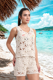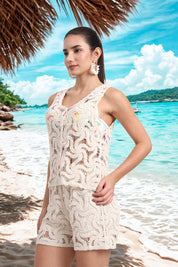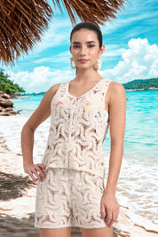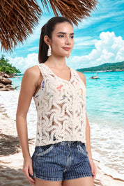 Lightweight, breezy, and just the right mix of cute and cool—this cotton crochet tank is made for slow beach days and sunset strolls.