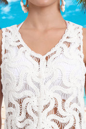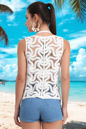 AXTZH White Crochet Beachwear Tank Top XBWTANKS0180IY
