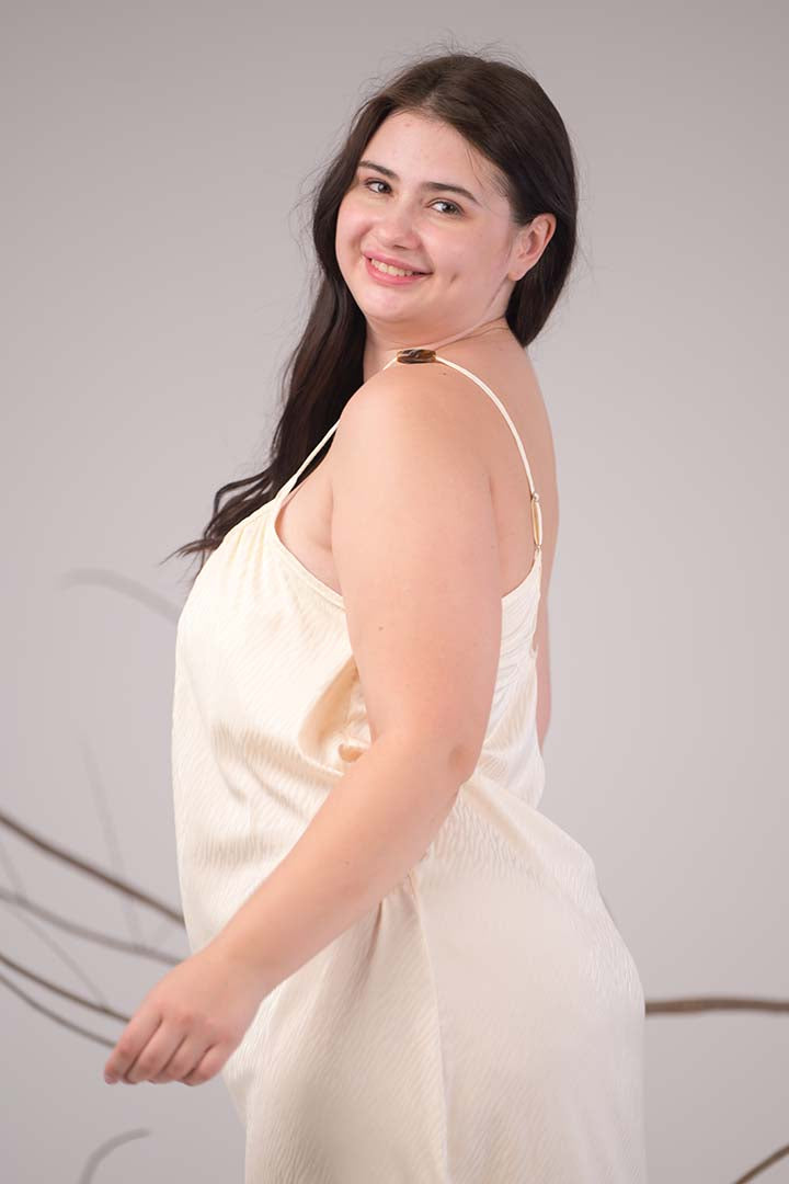 AXTZH Relaxed Fit Satin Midi Nightdress X5013-IVORY-F2S