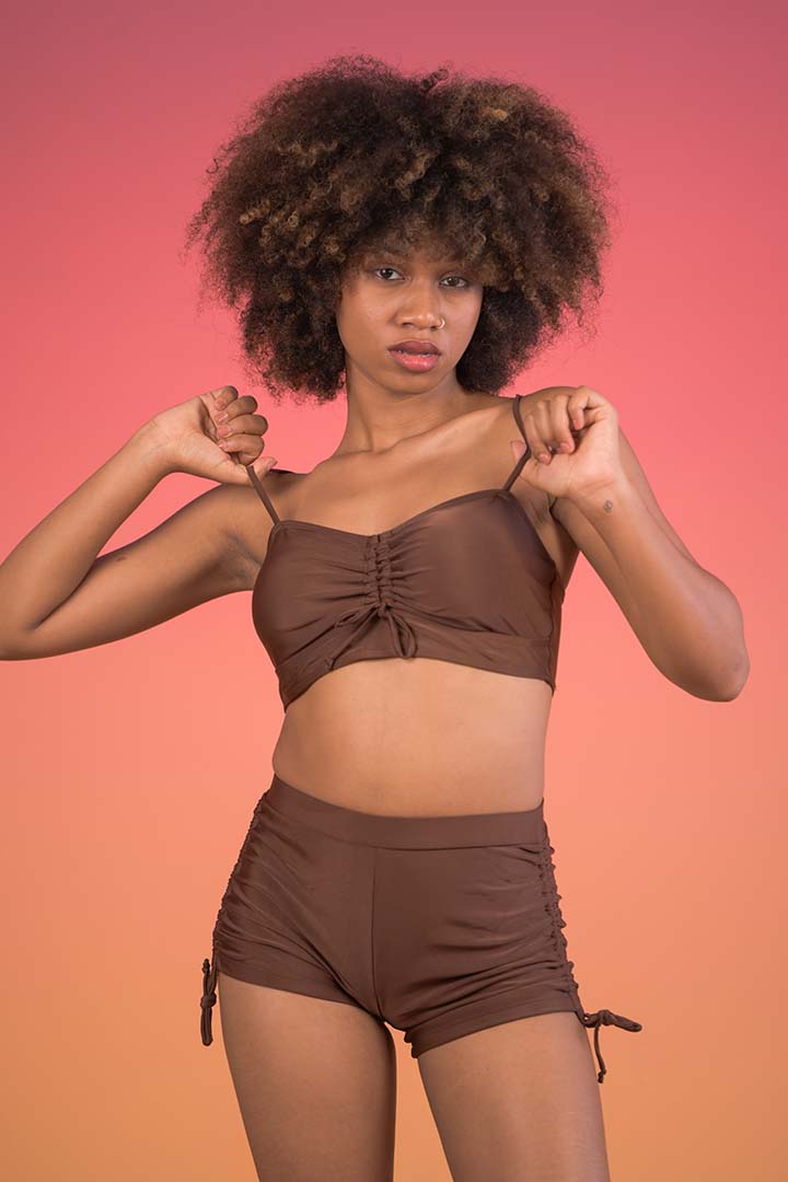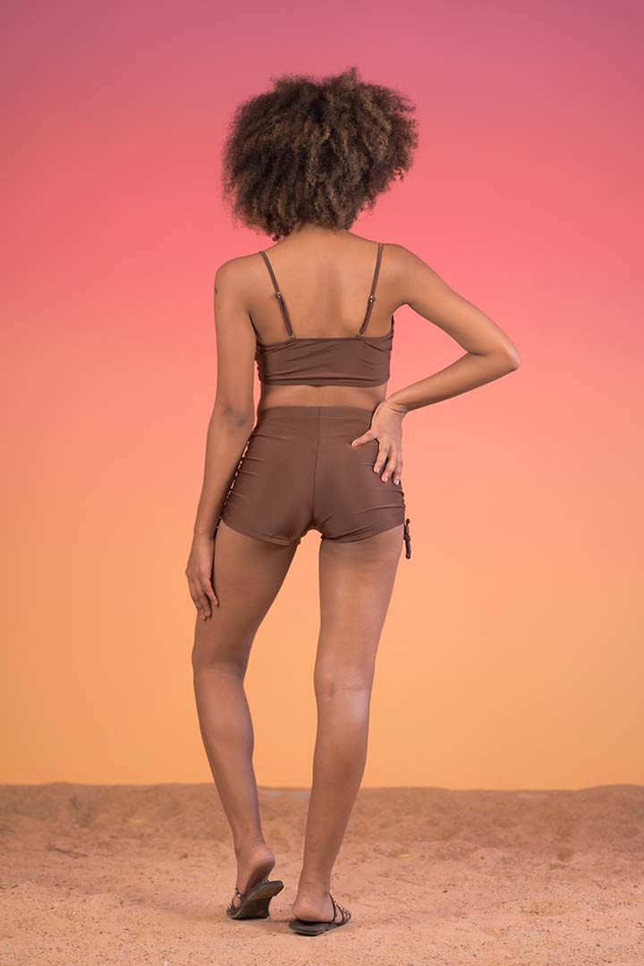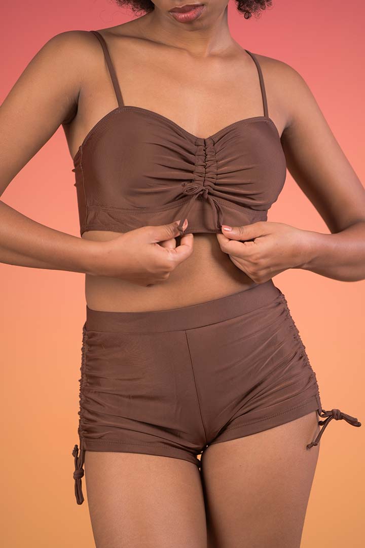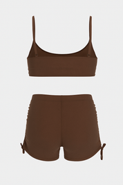 AXTZH Ruched High-Waisted Shorts Swimwear Set X9226-COFFEE-2PS