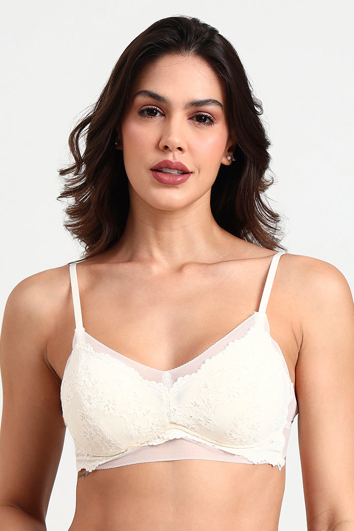 BELLAGIO Modern Sheer Strappy Bra with Comfortable Fit and Sensual Appeal BB9509-IVORY-CN022