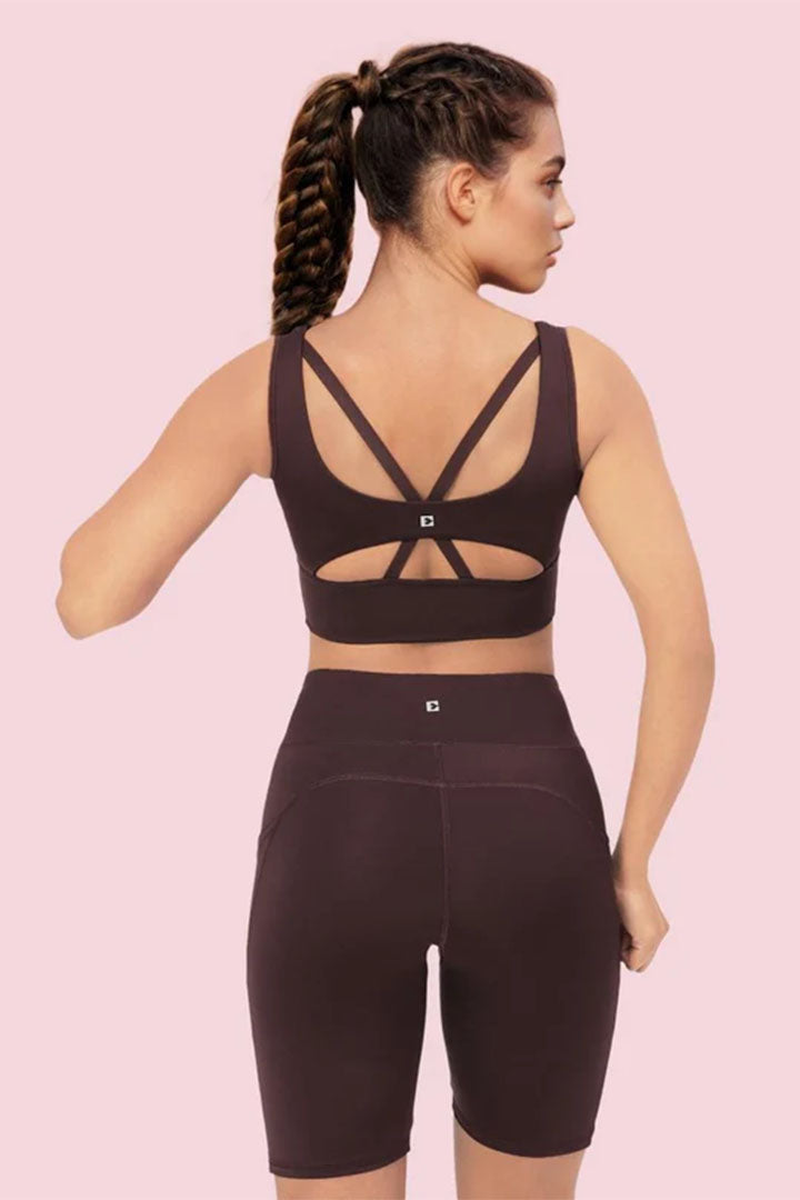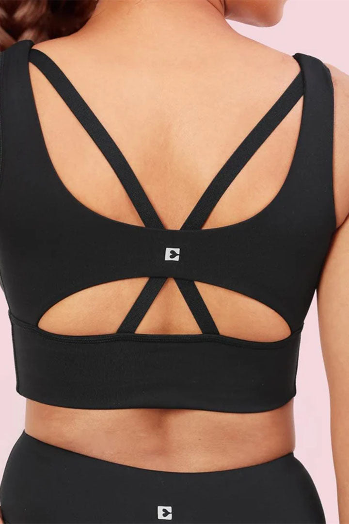 ENAMOR BRA A206 Women's Criss Cross High Impact Long Line Sports Bra - High Support, Padded, High Coverage, Non-Wired