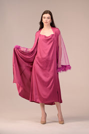 Step into a world of elegance and sensuality with our Satin Long Dress and Robe Set. The dress is crafted from luxurious satin that drapes beautifully over your body, offering a soft, flowy feel that glides with every movement. Featuring adjustable straps and a seductive cowl neckline, this dress creates a romantic, feminine silhouette that accentuates your curves. The flowy nature of the fabric adds to the dress's ethereal appeal, making it feel as soft as a whisper on your skin.