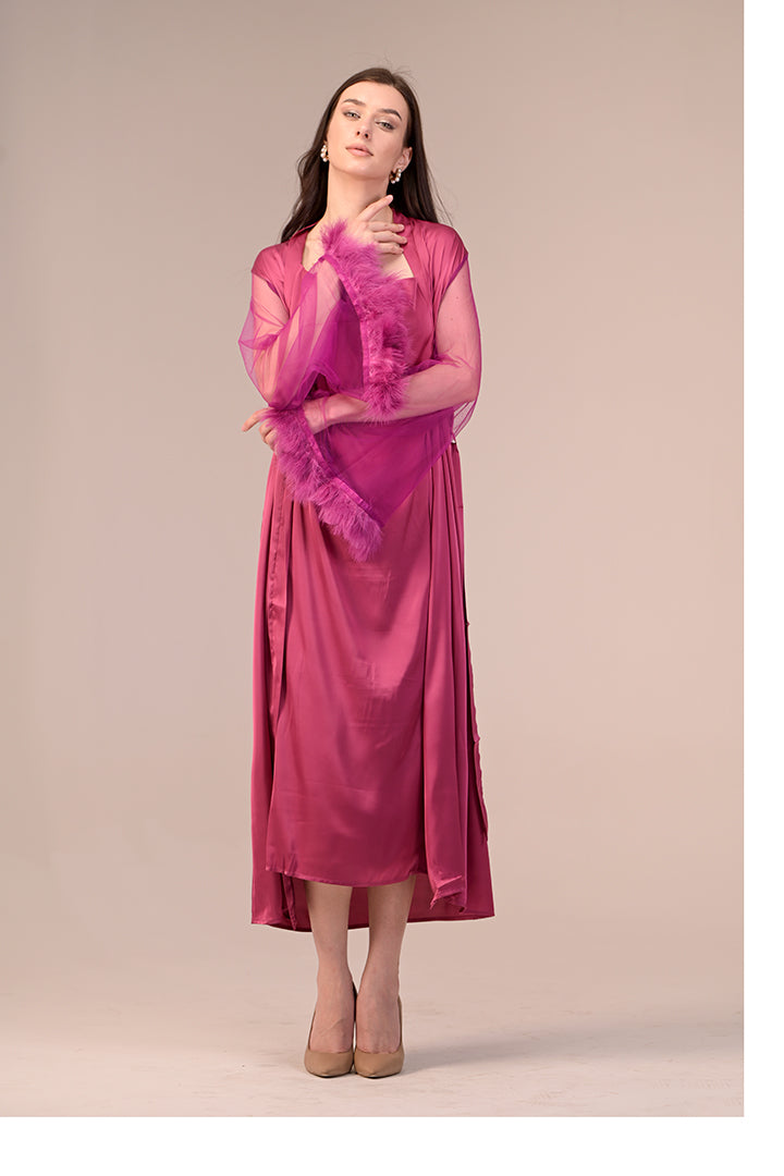 NIGHTWEAR-XF22SA133 Satin Long Nightdress with robe