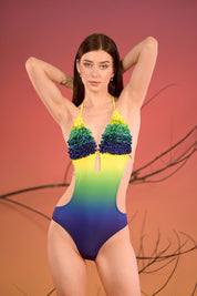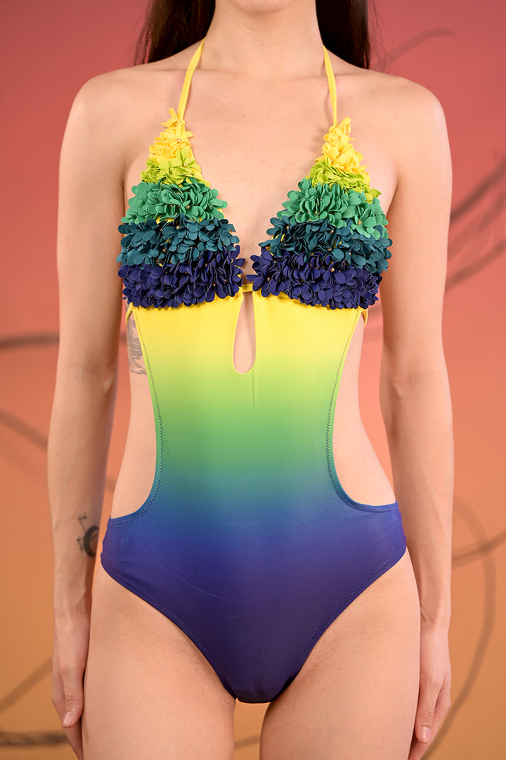 SWIMWEAR-XSWIM1PM1001IO-Floral design Elegant Cut-Out Bikini Swimwear