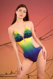 Turn up the heat on your honeymoon or special getaway with our Floral Design Elegant Cut-Out Bikini swimwear, designed to make you look effortlessly sensual and stylish. This stunning bikini set features a halter neck with a back tie closure, ensuring a customizable fit while beautifully highlighting your shoulders and back.